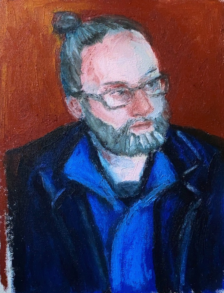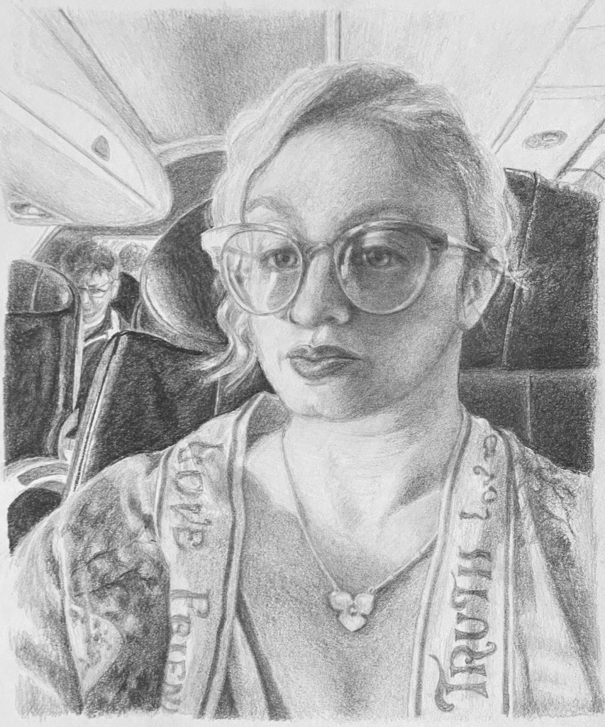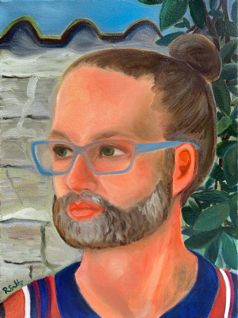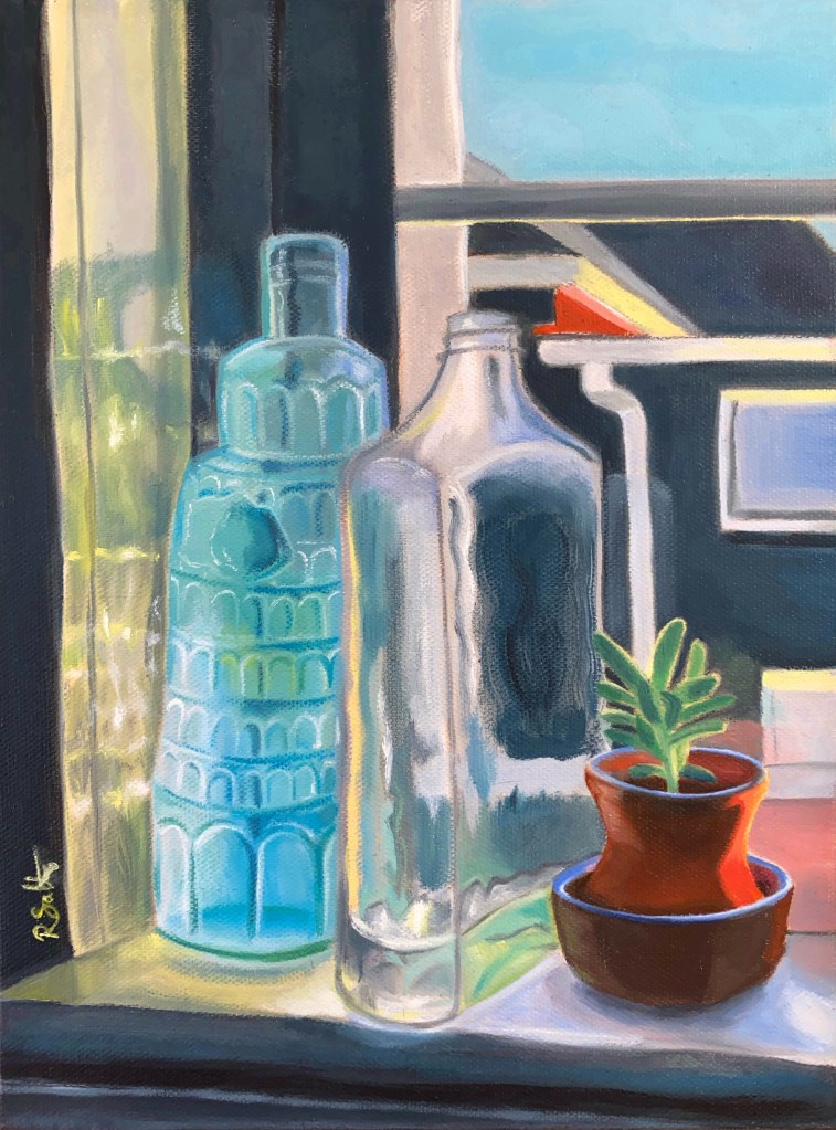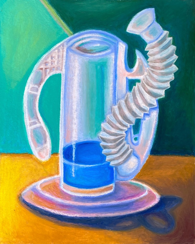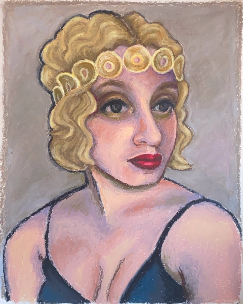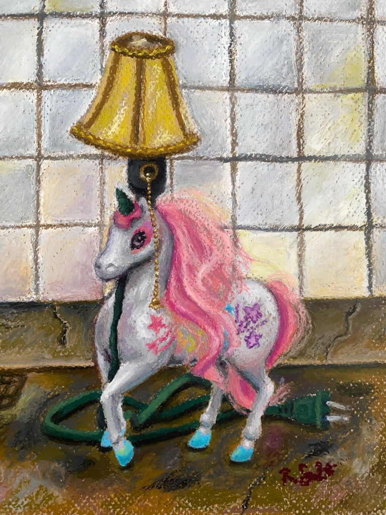 Marti’s Window, oil on canvasPortrait of Raven, gouache and oil pastel on canvasSelf Portrait, Oil Pastel on PaperVase with Kodak Brownie, oil pastel on paperJosh with EKG Electrodes, oil pastel on paperTruth Love Friendship, Graphite on paperCoffee Table Clutter, oil pastel on canvasUnicorn at 14th Street, oil pastel on paperStill Life in My Mom’s Kitchen, oil pastel on paperPortrait of Josh, Oil on canvasLady with a Cat, oil pastel and collageMemories of Breastfeeding, Graphite on paperIncentive Spirometer, oil pastel on paper